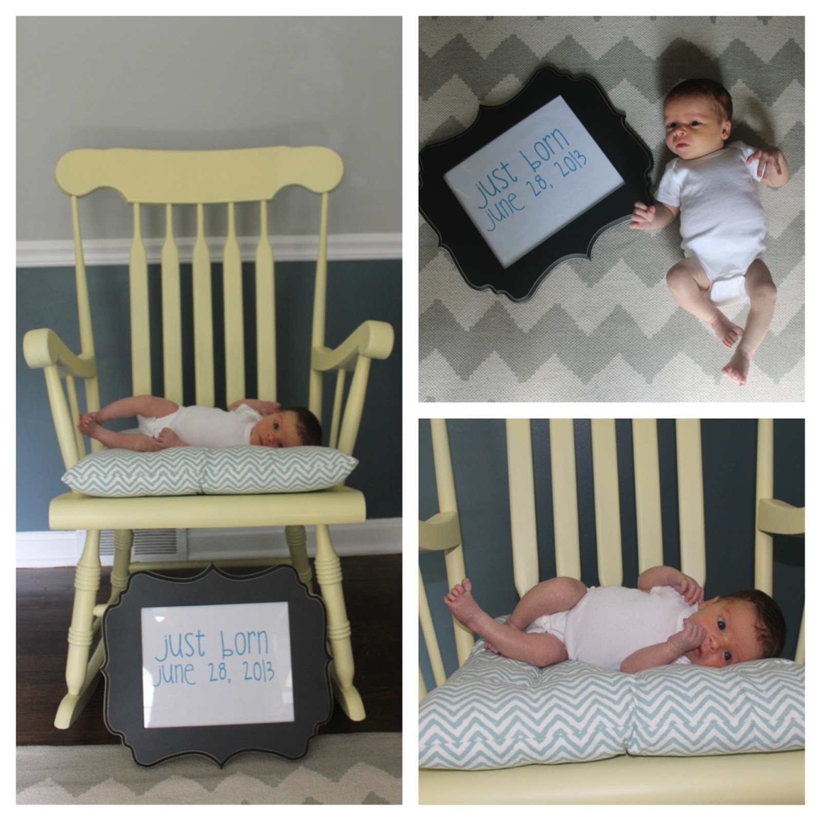 Wow, one month old already! We can't believe how fast the past four weeks went. You have definitely grown this month. At your one month well visit you weighed 9 pounds 14 ounces, 61 percentile and were 21.5 inches long, 58 percentile. It's no wonder that you have gained so much, you like to eat. From the day you were born, you always seem to be famished and ready to eat at any moment. You have also been called on more than one occasion a barracuda. On average you eat every two hours and even when mommy takes the time to burp you, you get really upset and will wiggle while mommy tries to get you to burp. We started to notice as the days went by that you seemed to get really fussy if you weren't eating or sleeping and would spit up a lot. We felt terrible and we tried everything to make you feel happy. In the evening you'd also get really sad from 8-10 and nothing we could do would make you happy. At your one month check up mommy chatted with the doctor and she witnessed you upset and decided to put you on some medicine for reflux. You have been on the medicine for a little over a week and you are a whole new baby. You are much more happy and alert while you are awake. You continue to like to eat every two hours, even at night! You are going to bed between 10-11 and will get up around one, three and five. It is crazy that you know when it has been two hours since the last time you ate and often will get up two hours later to the minute. Although you seem to be a little more feisty than your big sister you are very lovable and enjoy to be held and to soothe yourself with a pacifier.